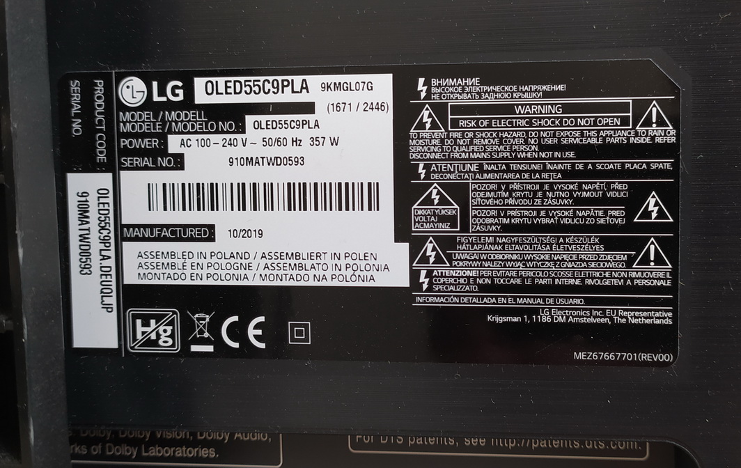 ТВ LG OLED55C9 куплен в феврале 2020, через 6 месяцев в июле 2020 умер, включается и через 10-20 сек просто сам опять выключался. Заключение СЦ замена матрицы.