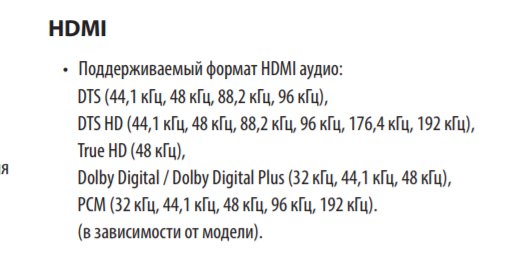 то здесь речь о том, что/какие звуковые потоки можно передать через HDMI-вход с внешнего активного источника [медиаплеера/проигрывателя BD/приставки и т. п. ]. а речь шла о способности внутреннего плеера ТВ самостоятельно [с подключенного пассивного носителя/хранилища файлов] извлекать из файлов и обрабатывать такой звук [об этом все "сокрушаются"]