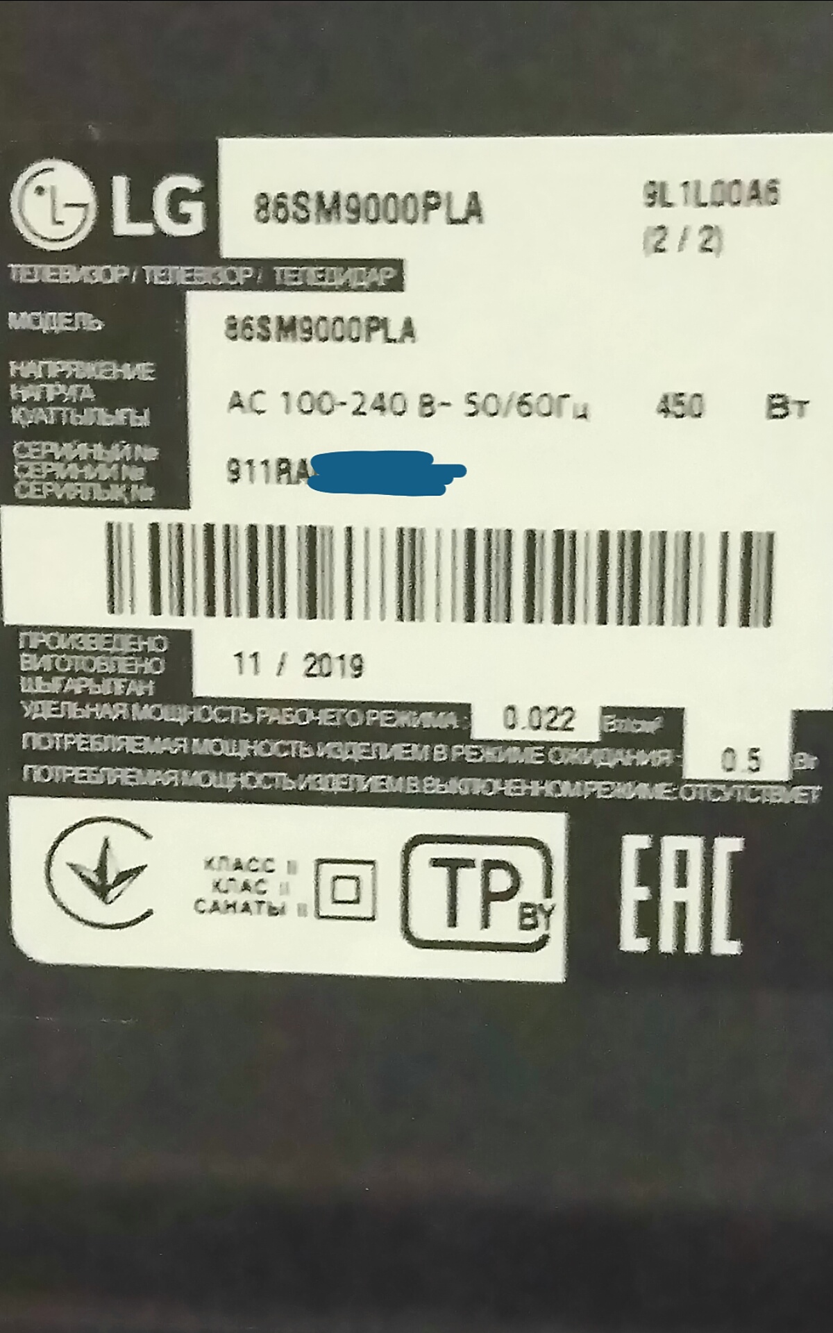 К моим фоткам выше добавлю, что тв произведён в ноябре 2019 г. на заводе "LG Электроникс Рус", п. Дороховское, Рузский р-н, Моск. обл.