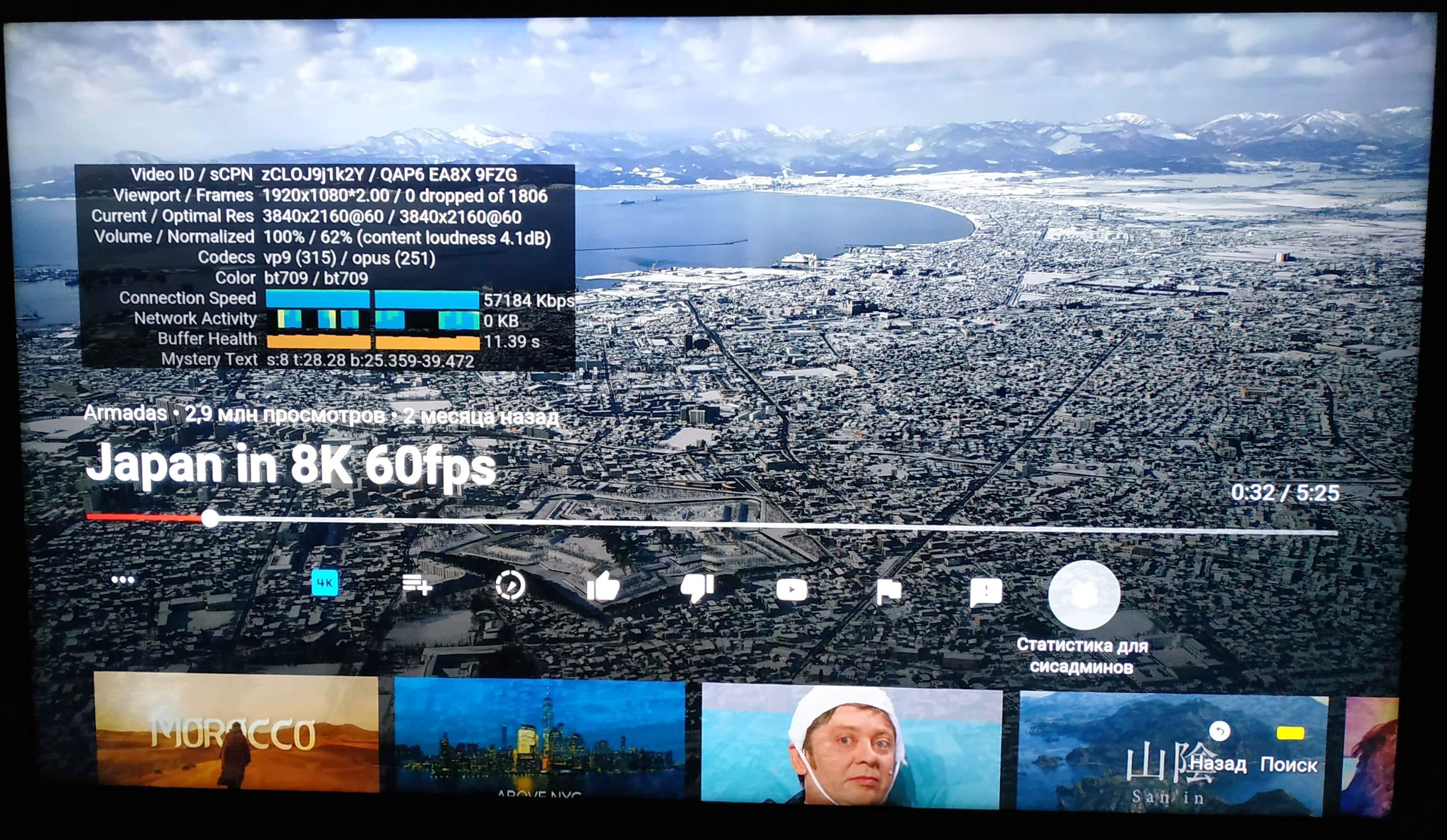 Да канал то приемлемый, имелось в виду (если "Статистика для сисадминов" не врет), что контент в низком разрешении "растягивается" до Full HD, что приемлемо, а вот изначально хороший сигнал 4К (8К то ли YouTube то ли телевизор - не воспринимает) - "ужимается" до все тех же 1920*1080, что выглядит несколько странным...