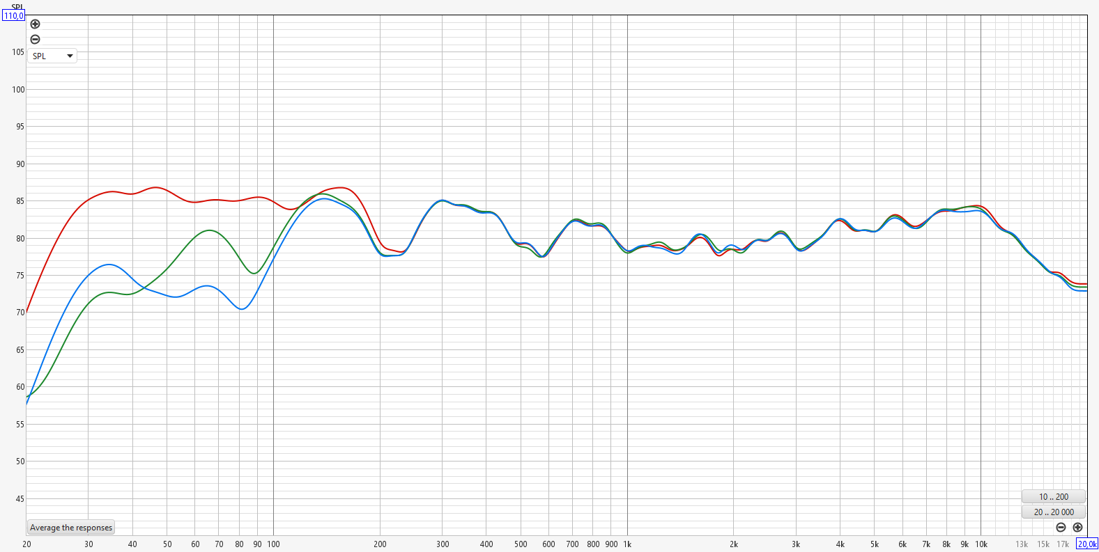 А вот тут красным, без boost, оранжевый с boost - тут видно, что весь диапазон до 600 Гц поднимается, включая самый низ. Но слушать невозможно. А зеленый - boost минус басы на 5 кликов. Не идеально, но лучше, чем как-то иначе.