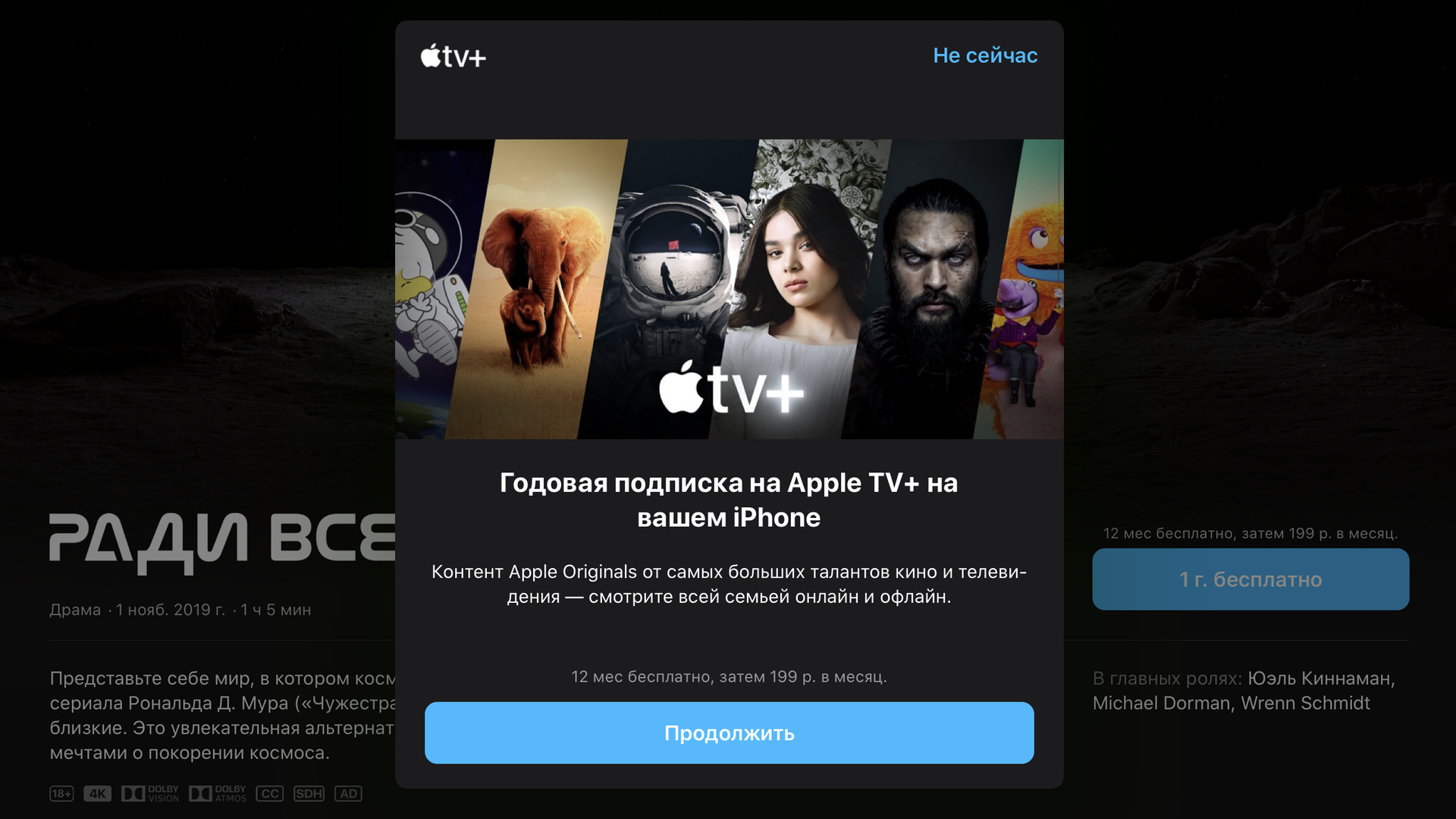 Сколько стоит Apple TV+Стоимость месячной подписки на Apple TV+ в США составит 4,99 долларов, а в России — всего 199 рублей. Это невероятно низкая цена, учитывая, что Apple предоставляет пользователям сразу семейный доступ. Для сравнения: Netflix просит за самый дешёвый абонемент 8 долларов, Hulu — 8 долларов, а Amazon — 99 долларов в год (примерно 8,25 доллара в месяц). Совершенно очевидно, что Apple с такими расценками просто рвёт конкурентов в клочья, но это ещё не всё.