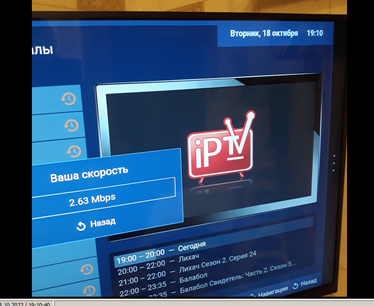 Вот сейчас на 20.20 - скорость нормальная (более 100 мегабит). Но вижу торможение и остановку картинки с постоянным пропаданием видео и звука на Россия 1. Приложение показывает скорость сейчас около 60 мегабит сек. На протяжении десяти минут проблем нет 20.20 - 20.30 Сейчас 20.45 - нет проблем пока.20.50 - скорость упала до 20 мегабит, но просмотр пока нормальный.