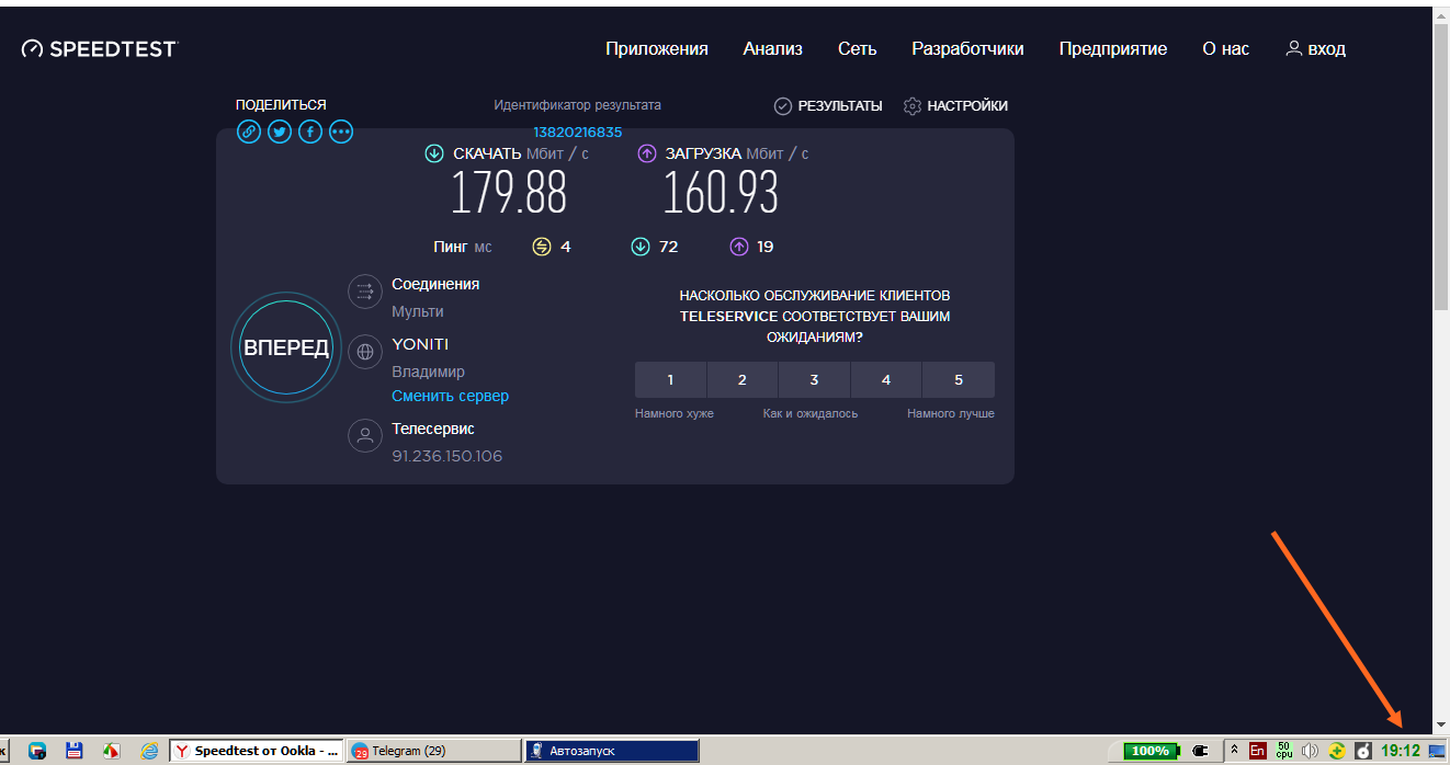 Скорость спидтест по Wi-Fi Реально по LAN 200 Мбит/сек