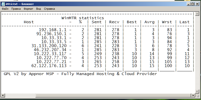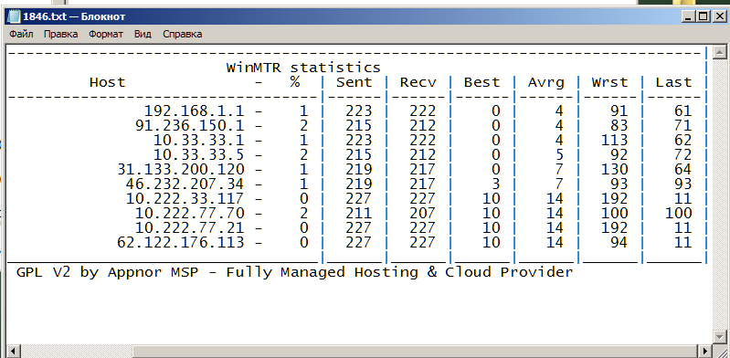 Добавлено спустя 2 минуты 57 секунд:И программой mtr в момент нормальной скорости