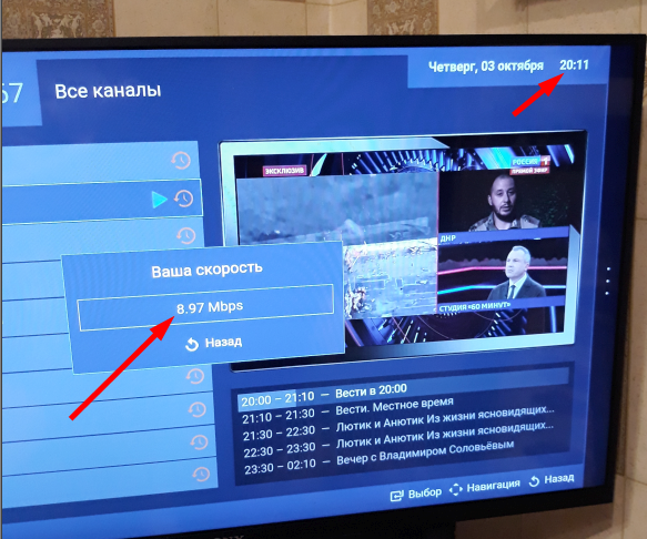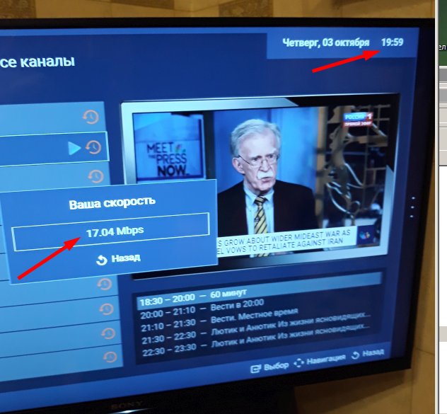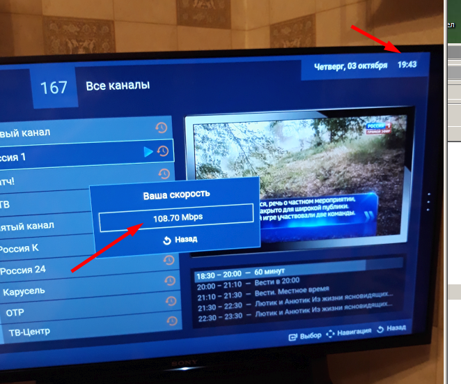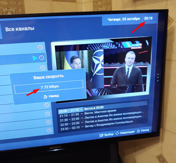 У вас совсем другое. Здесь каждый день с 20.00 до 22.00 рушатся все каналы. Очень низкая скорость до сервера wwwtv. Меняется в один момент с сотни до примерно 5-8 Мегабит, с провалами до 2 Мегабит/сек, когда вообще ни один канал не показывает. В 22.00 примерно - все так же быстро восстанавливается до прежних 100 (скорость). И все идет отлично. И так - каждый день последнее время. Ранее ничего не пропадало. Вечером скорость поменьше была ранее, примерно до 60 - 80 Мегабит/сек/ Но это нормально и этого многократно достаточно для любого канала. Евроспорт не смотрю, не знаю что там за затыки. ранее - год назад у меня это так же происходило. здесь обсуждали проблему. Виной- оборудование провайдера. Как моего, так и вышестоящего прова в Владимире (я с района Гусь-Хрустальный). И мой провайдер и областной тогда модернизировали свое оборудование и проблема ушла.