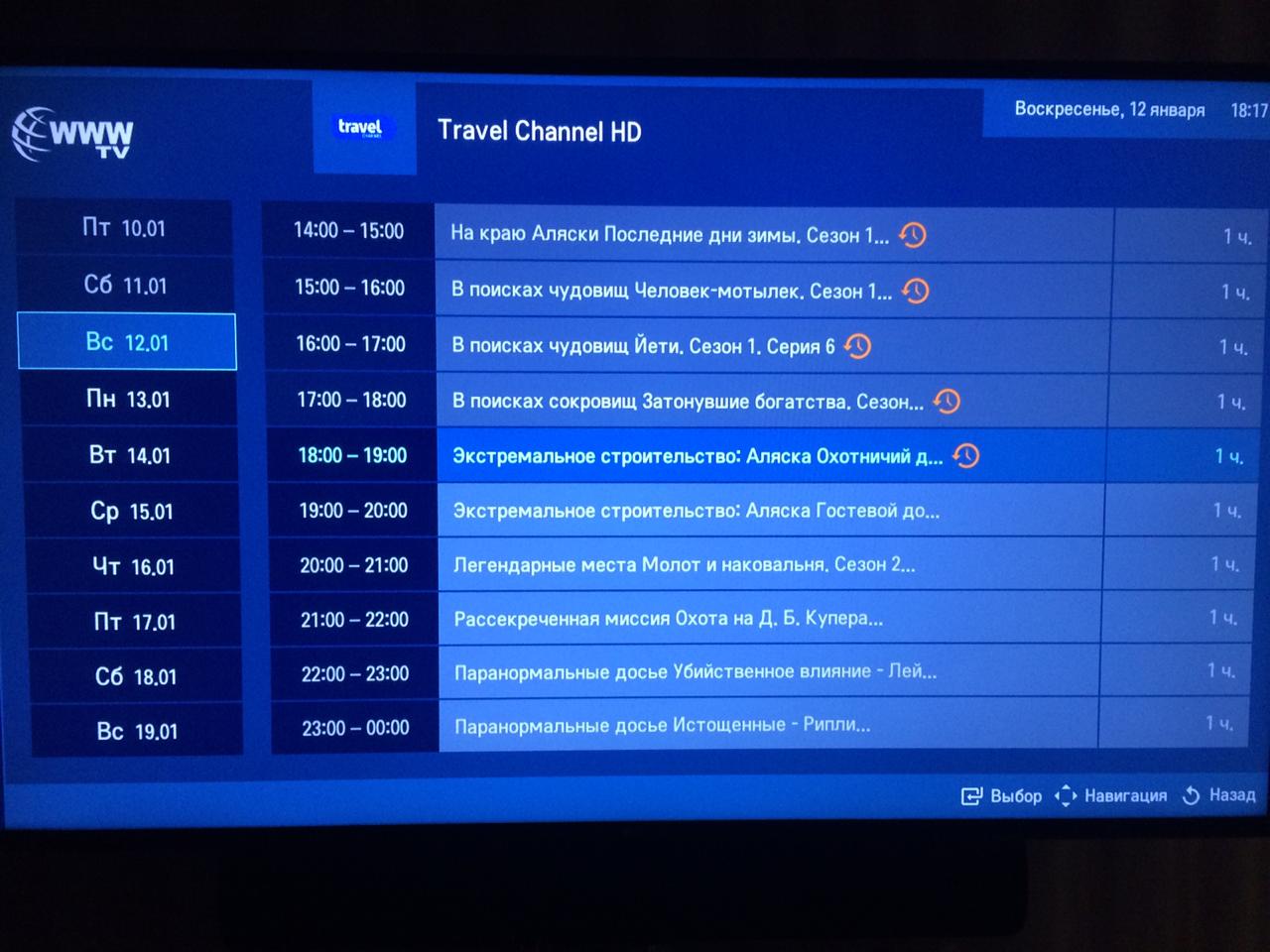 Тут архив есть, но очень неудобный. Я так и не разобрался, как он работает. Перемотка назад вперед понятна, а вот как попасть на конкретную передачу или фильм с конкретной датой и временем непонятно. Качество неплохое. В остальном надо разбираться.