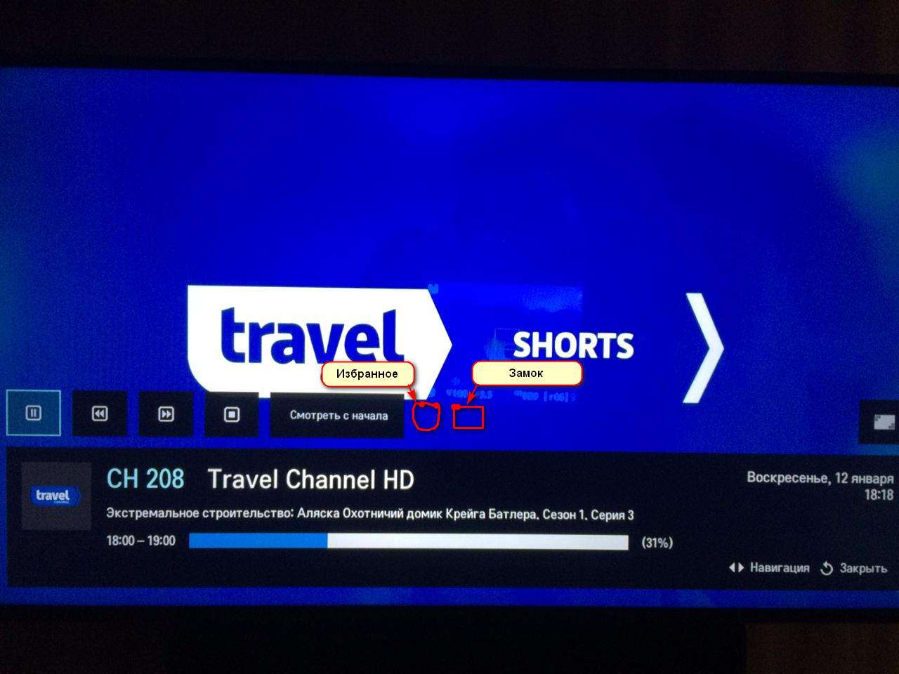 Сейчас при нажатии кнопки вправо появляется окошко: ТВ гид, Добавить в избранное, Установить замок (как изображено на фото № 1 ниже).