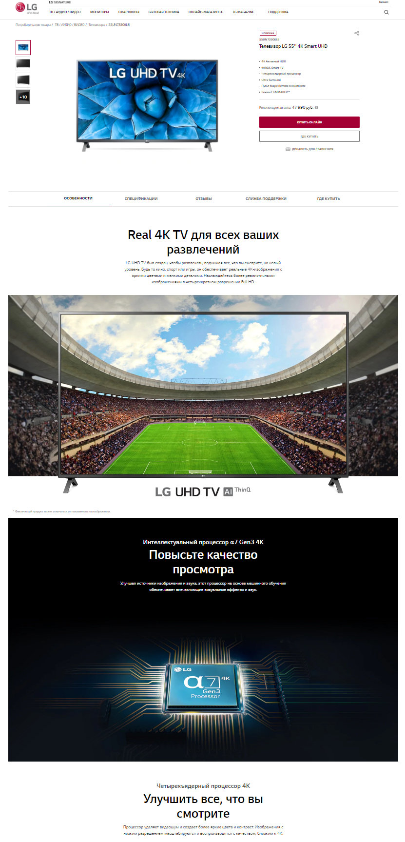 Российский сайт LG опять "отжигает", в бюджетную модель UN7300/UN7350 они "установили" мощнейший процессор Alpha7 Gen3 (который, кстати, идет только в топовых моделях).
