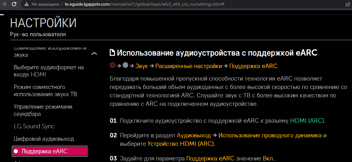 любые ролики на YouTube все так же постоянно выдаются на саундбар в формате Dolby Digital, из-за чего в тыловых колонках постоянно просто легкое шипение, но при выключенном eARC все время совместно с саундбаром работают динамики ТВ (не смотря, что совместное использование стоит выкл)