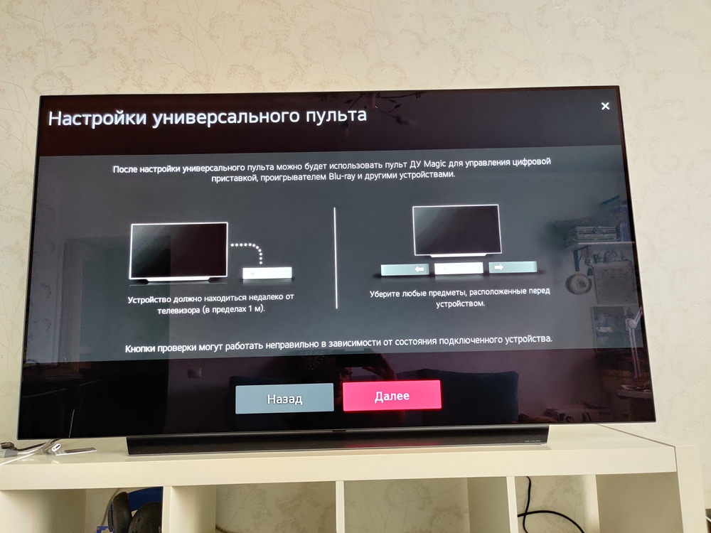Также возникла проблема с настройкой кнопок "STB MENU", "STB PWR" на универсальном пульте. К ТВ подключена медиприставка Nvidia Shield 2017, попытался настроить Magic Remote для управления Shield-ом и не смог разобраться как это сделать, следуя инструкциям webOS на экране (под спойлером):
