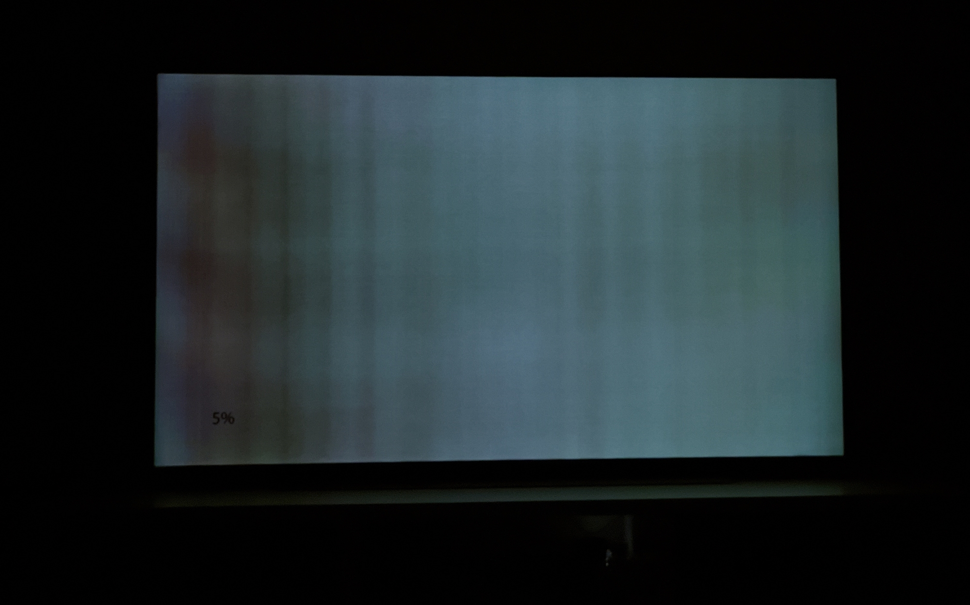 Решил проверить ТВ дополнительно на проблему с частоколом серых полос (о которой вскользь упоминал выше), и тут я окончательно убедился, что работа ТВ меня не устраивает. В большинстве фильмов все было отлично, но в некоторых фильмах в темных сценах я явно видел вертикальные полосы там, где их не должно было быть. Попробовал различные режимы, настройки - плюс/минус проблема сохранялась. Тут я еще не знал много про бандинг, но явно понимал, что это меня не устраивает. Днями позже в процессе выяснений прочитал про него, постарался сфотографировать то, что я видел на экране: