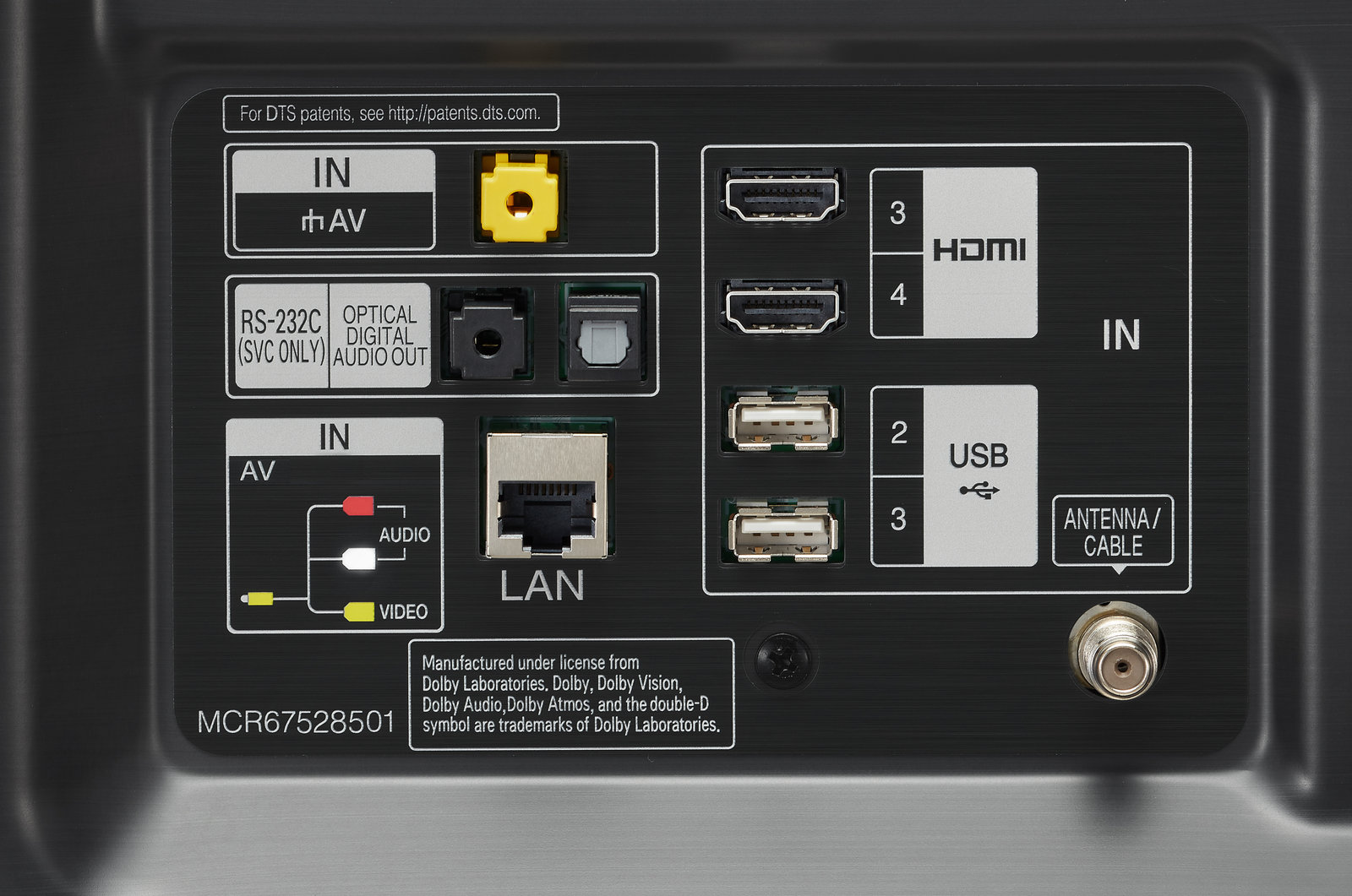 Задняя панель телевизоров линейки NANO86 оснащена двумя входами HDMI v.2.1 (один из которых совместим с ARC и eARC), двумя разъемами USB 2.0, компонентным AV-входом (только в версии для США), 2 антенными входами (для спутникового и кабельного/эфирного ТВ) и одним портом LAN (со скоростью 100 Мбит/сек). Что касается аудио, то на этой же панели расположен только оптический аудиовыход.
