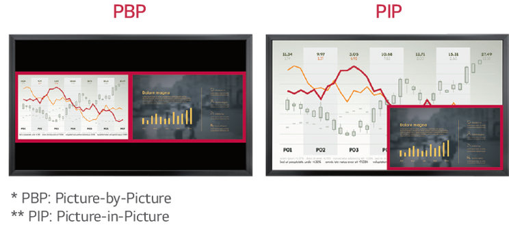 PBP * позволяет использовать многоэкранный режим на одном дисплее с 2 источниками, что позволяет максимально использовать всю отображаемую площадь.