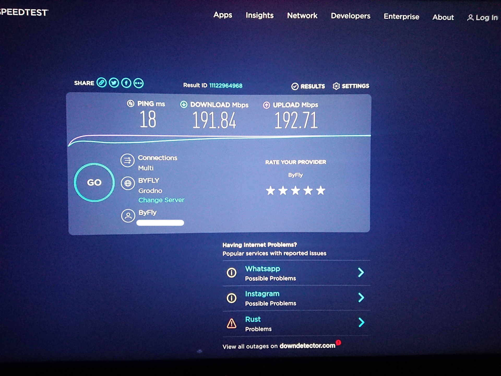 Попробуй на speedsmart, там более адекватно показывает