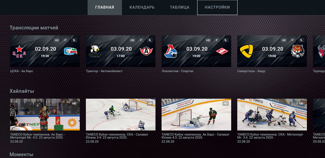 Если нет возможности посмотреть игру целиком – в приложении доступны хайлайты матчей и специально отобранные лучшие моменты.