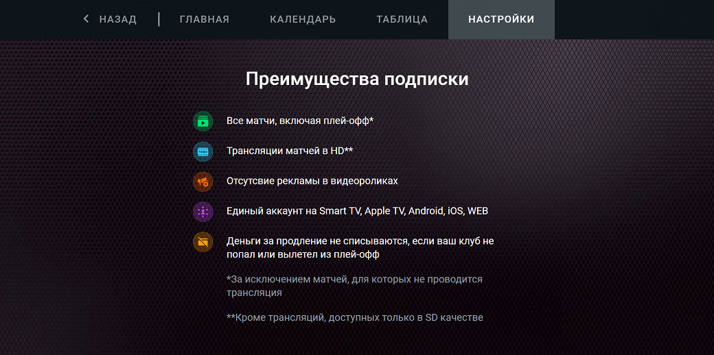 - Трансляции всех матчей в HD-качестве, включая плей-офф*