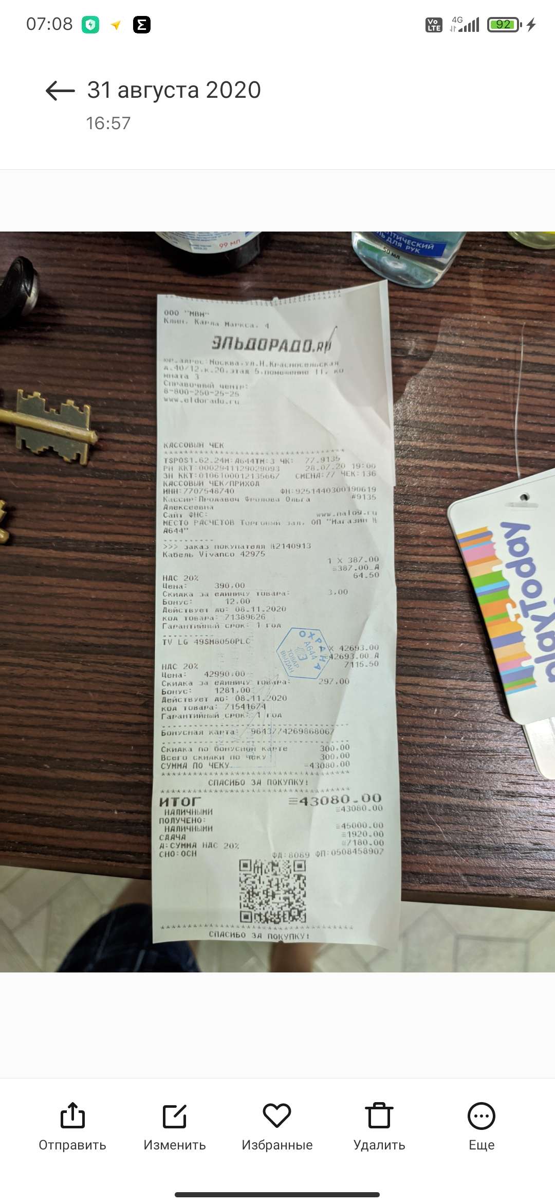 Новый, в пользовании с 28.7.2020, не понравился черный цвет при приглушённо свете, первый ТВ на ips матрице, днём и при нормальном освещении изображение отличное, но использую в основном вечером.