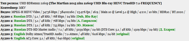 Так дайте ссылку на конкретно то, где скачивали этот релиз/файл (посмотреть что там в контейнере засунуто, просто так "не ругается" обычно. Очень большие подозрения, что там в контейнере и TrueHD присутствует, который АПК встроенного плеера не воспринимает, о чем и предупреждает, и даже не включает в состав "видимых" к выбору дорожек)