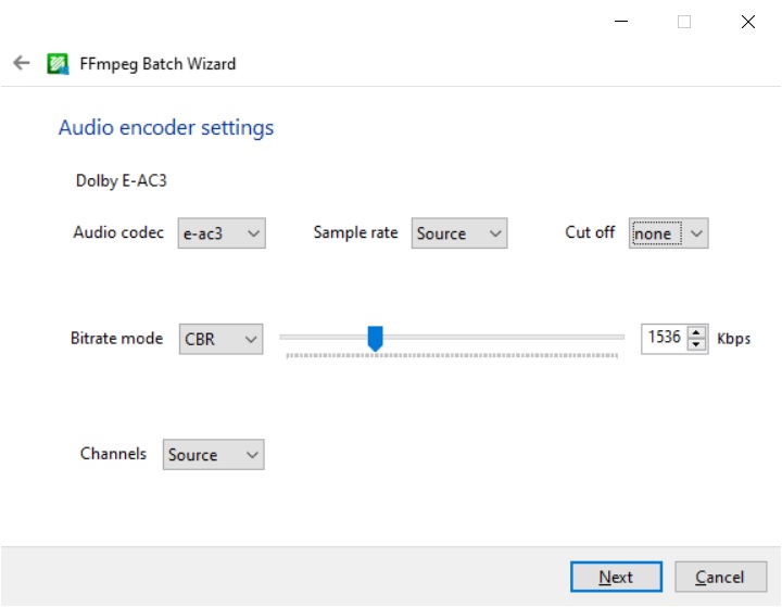 Выбор нужного нам кодировщика E-AC-3 и установка идентичных с DTS параметров
