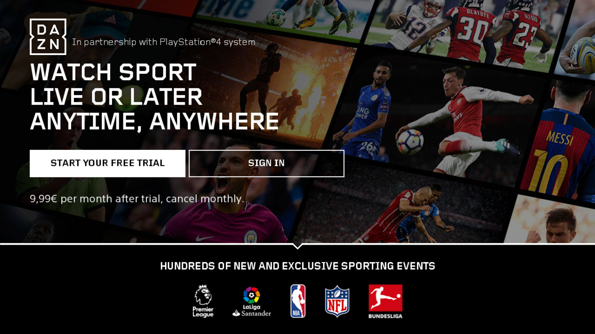 DAZN — стриминговый сервис, транслирующий в прямом эфире спортивные состязания для болельщиков по всему миру. Платформа обладает в том числе обширной библиотекой и дает возможность зрителям наслаждаться спортом в любое удобное время. В первую очередь DAZN ориентирован на бокс, прямые трансляции, еженедельные шоу, классические бои и документальные фильмы.