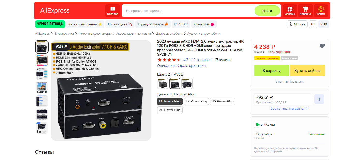 narpol писал(а):Как раз в указанной теме сеть информация по экстрактору, который именно это и обеспечивает в схеме с внешним источником и древним акустическим сетапом, не имеющим ARC/eARC и (или) не обеспечивающим требующуюся пропускную способность по видеопотоку.
