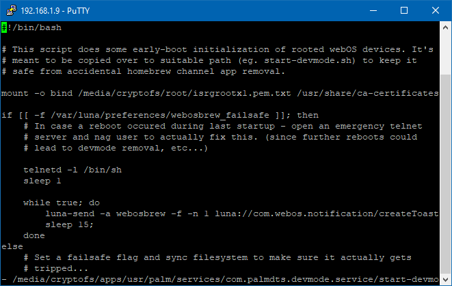 vi /media/cryptofs/apps/usr/palm/services/com.palmdts.devmode.service/start-devmode.sh