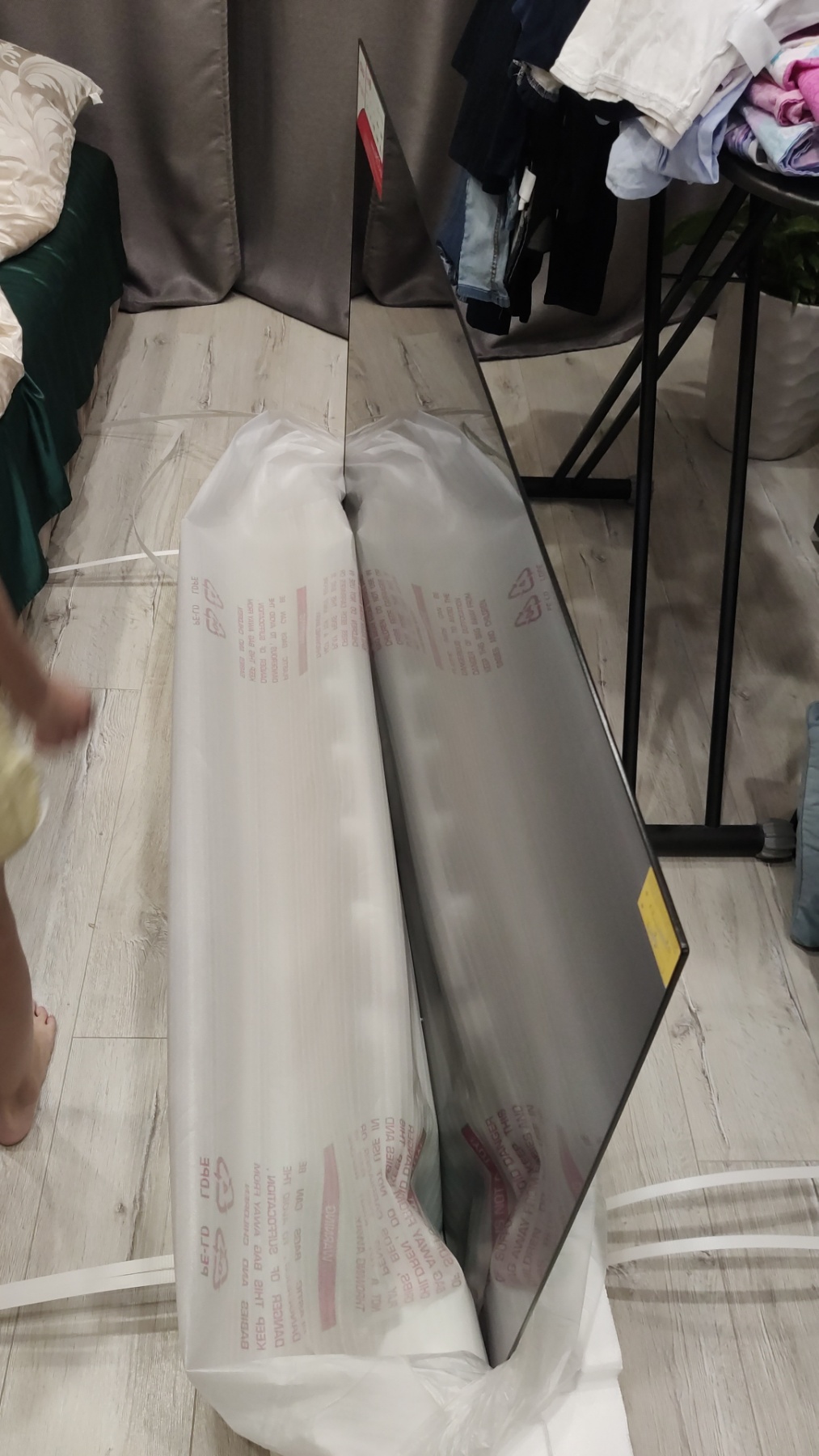 Чистое зеркало, отражается все, но была наклеена пленка, поэтому дома должно быть все гораздо лучше.