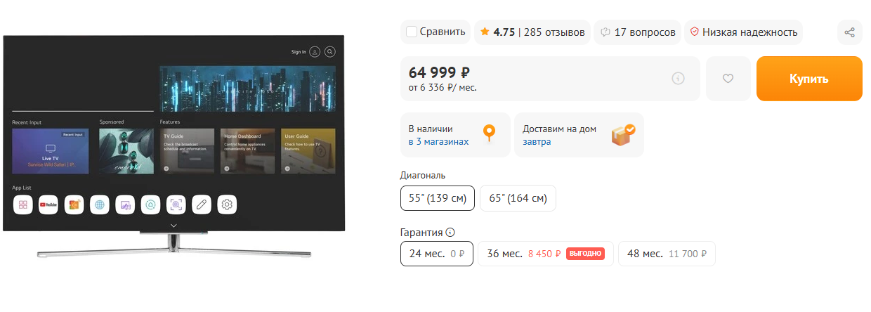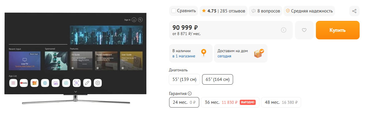 Как итог, сильно проигрывает (по визуальным впечатлениям от итоговой картинке) когда-то эксплуатировавшемуся в такой же диагонали UJ740 от LG (2017 года).