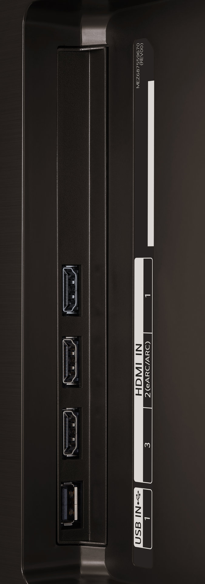 Боковая панель модели 48C4 оснащена тремя входами HDMI v.2.1a (один из которых совместим с ARC и eARC), одним разъемом USB 2.0 и слотом условного доступа CI+.