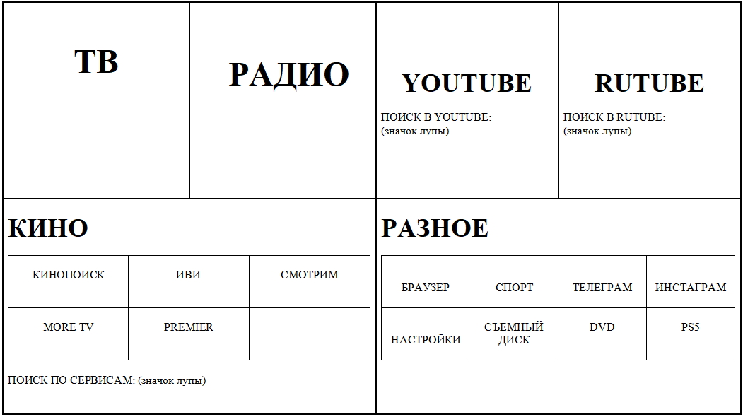 Есть идея полностью изменить дизайн главного экрана в webos 6.0 (рисунок прилагается).