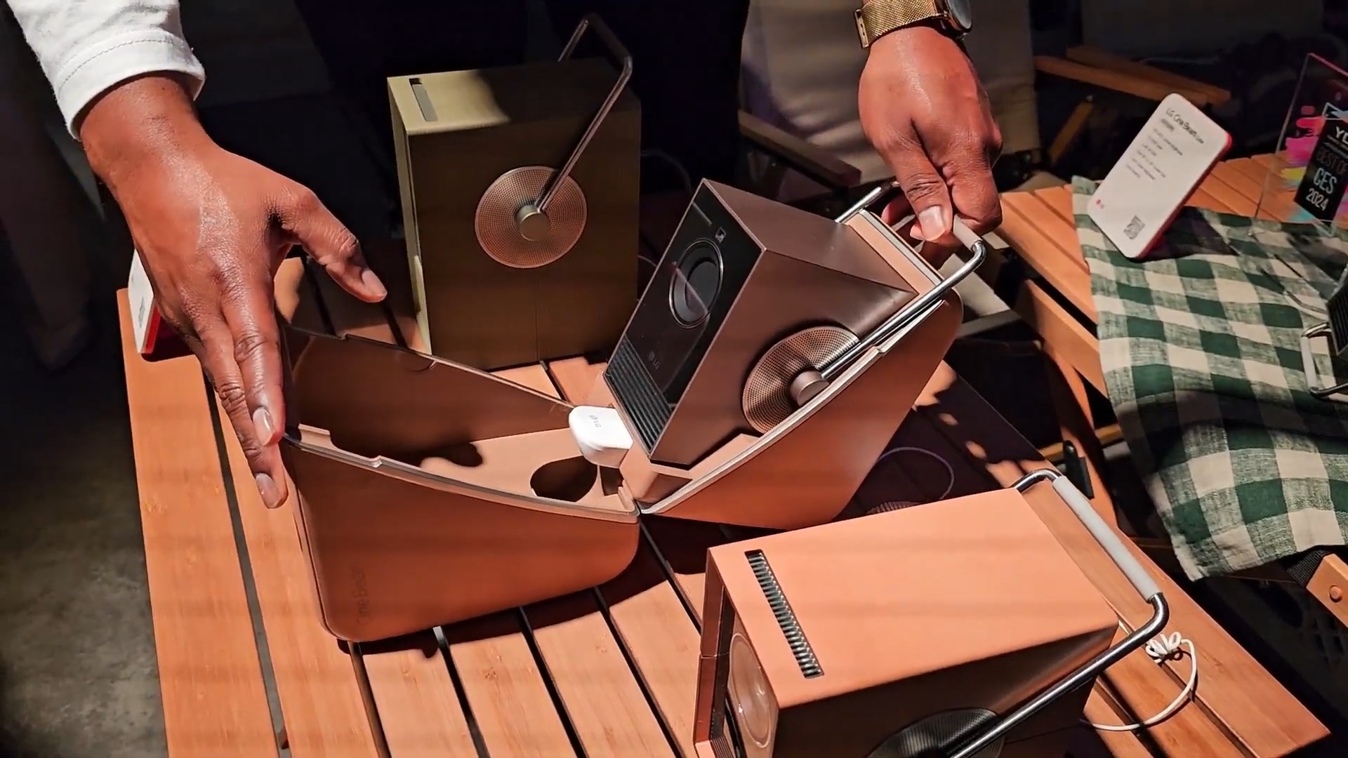 ВыводыПортативный развлекательный DLP-проектор LG CineBeam Q HU710PB отличается привлекательным и умеренно необычным дизайном. Этот проектор можно использовать как для просмотра кино, так и для развлечений, менее требовательных к качеству изображения. В случае кино и, например, просмотра фотографий нужно обеспечить хорошее затемнение и выбрать режим Filmmaker mode, в котором цвета наиболее естественные. А, скажем, для просмотра спортивных передач в компании или для игры во что-нибудь не очень динамичное проектор можно перевести в режим максимальной яркости, оставив в помещении немного света. Далее списками: