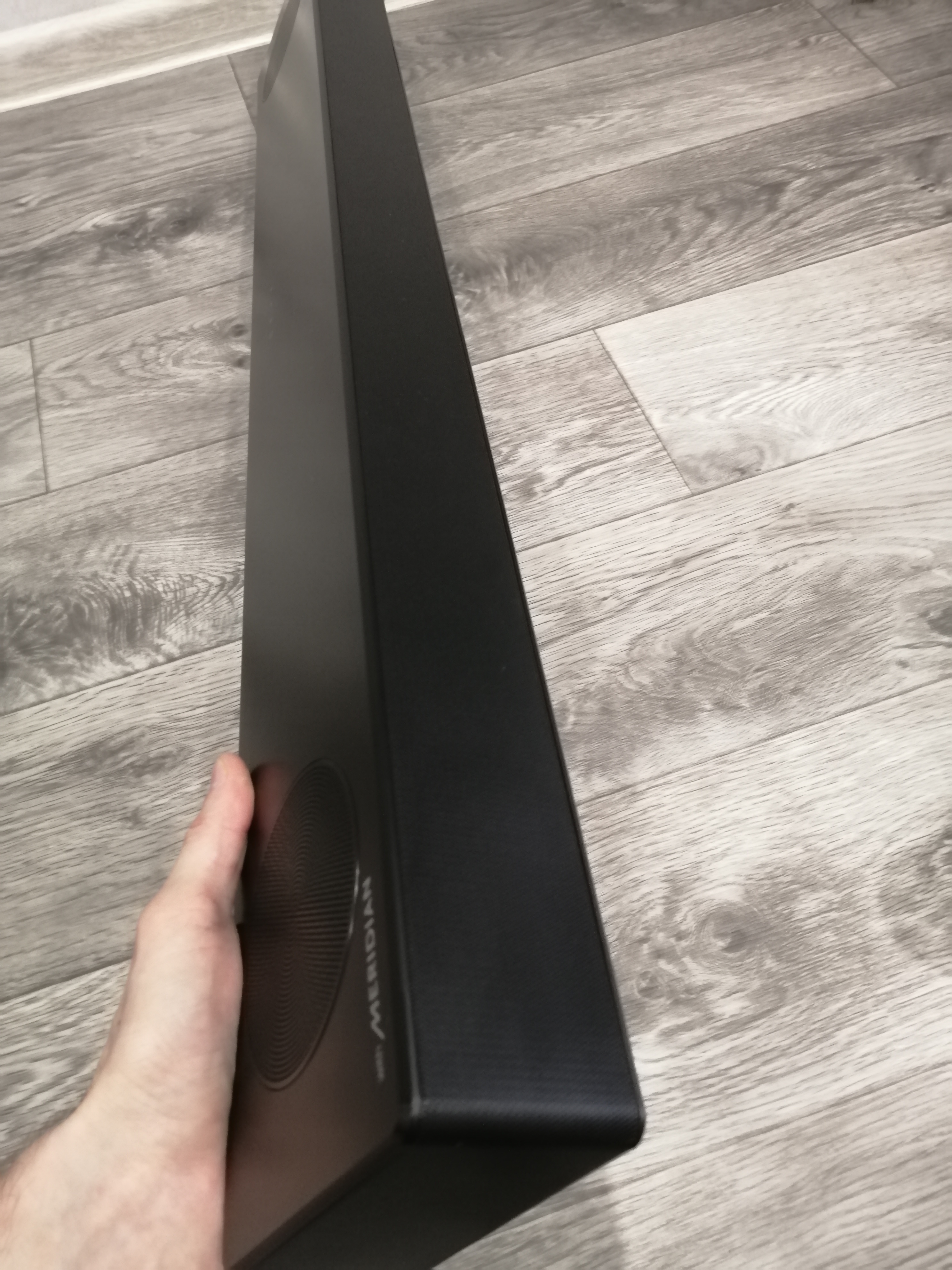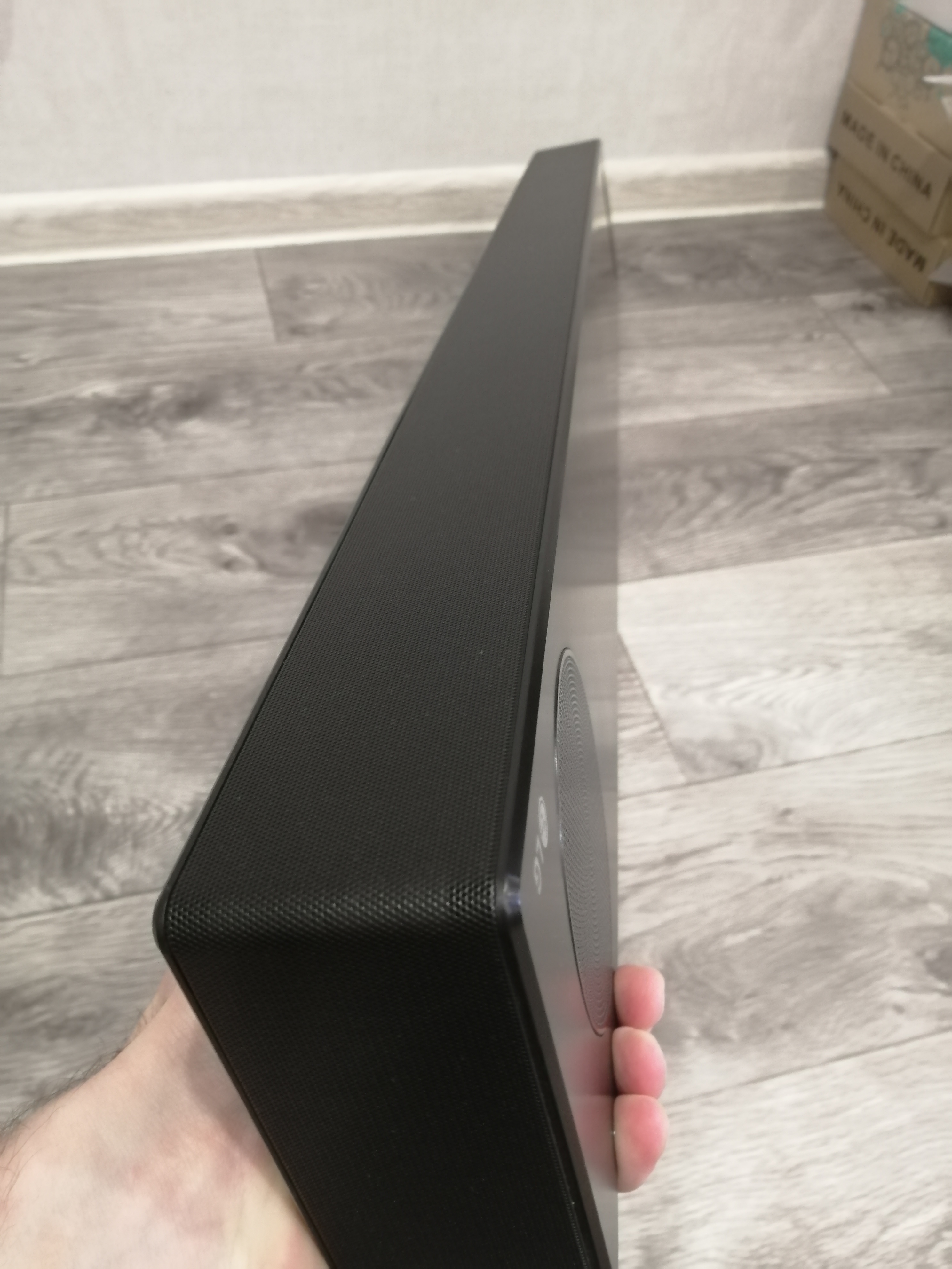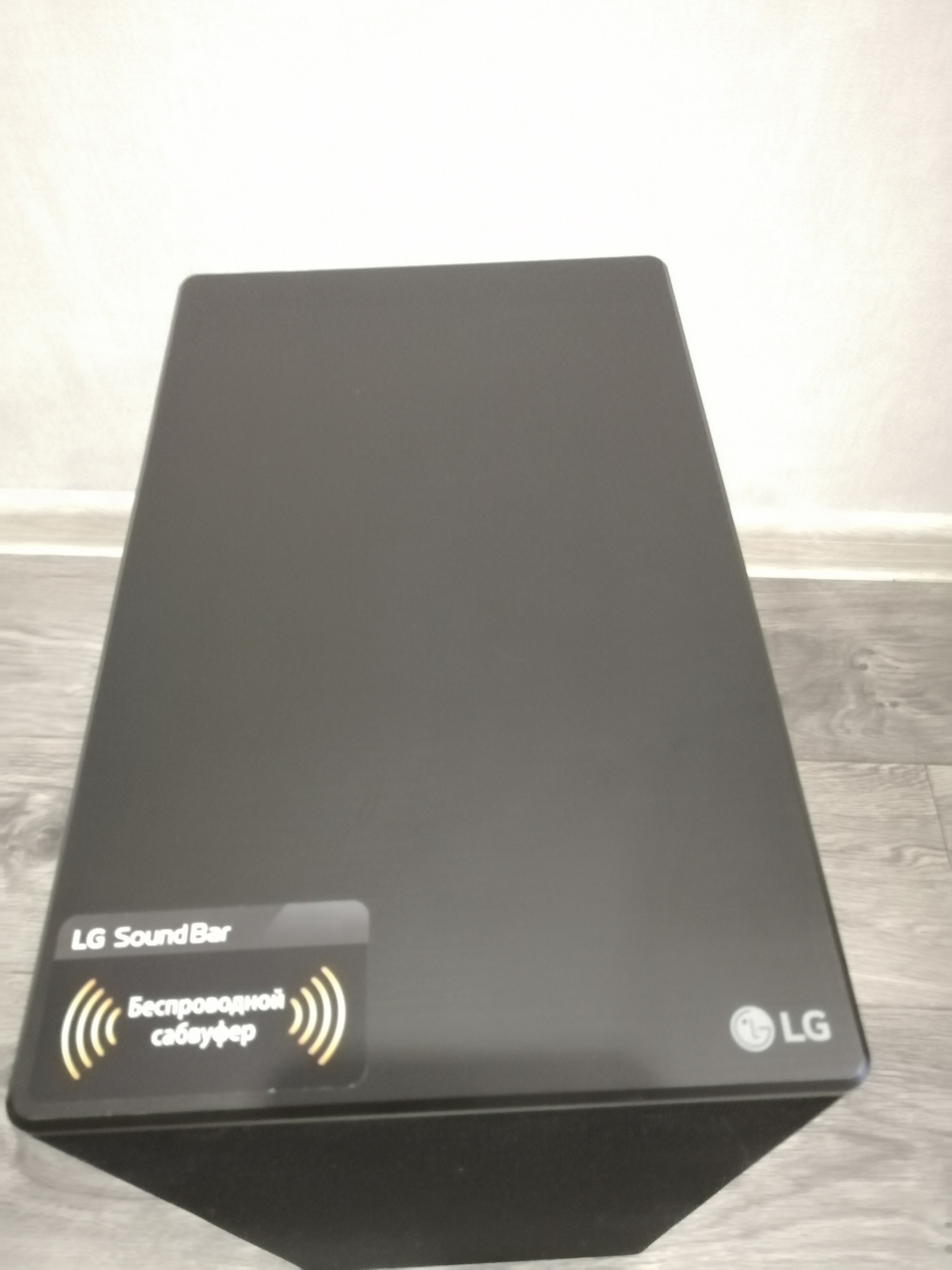 Комплект: Панель, сабвуфер, БП, ПДУ, кабель питания, оптический кабель. Коробки нет.