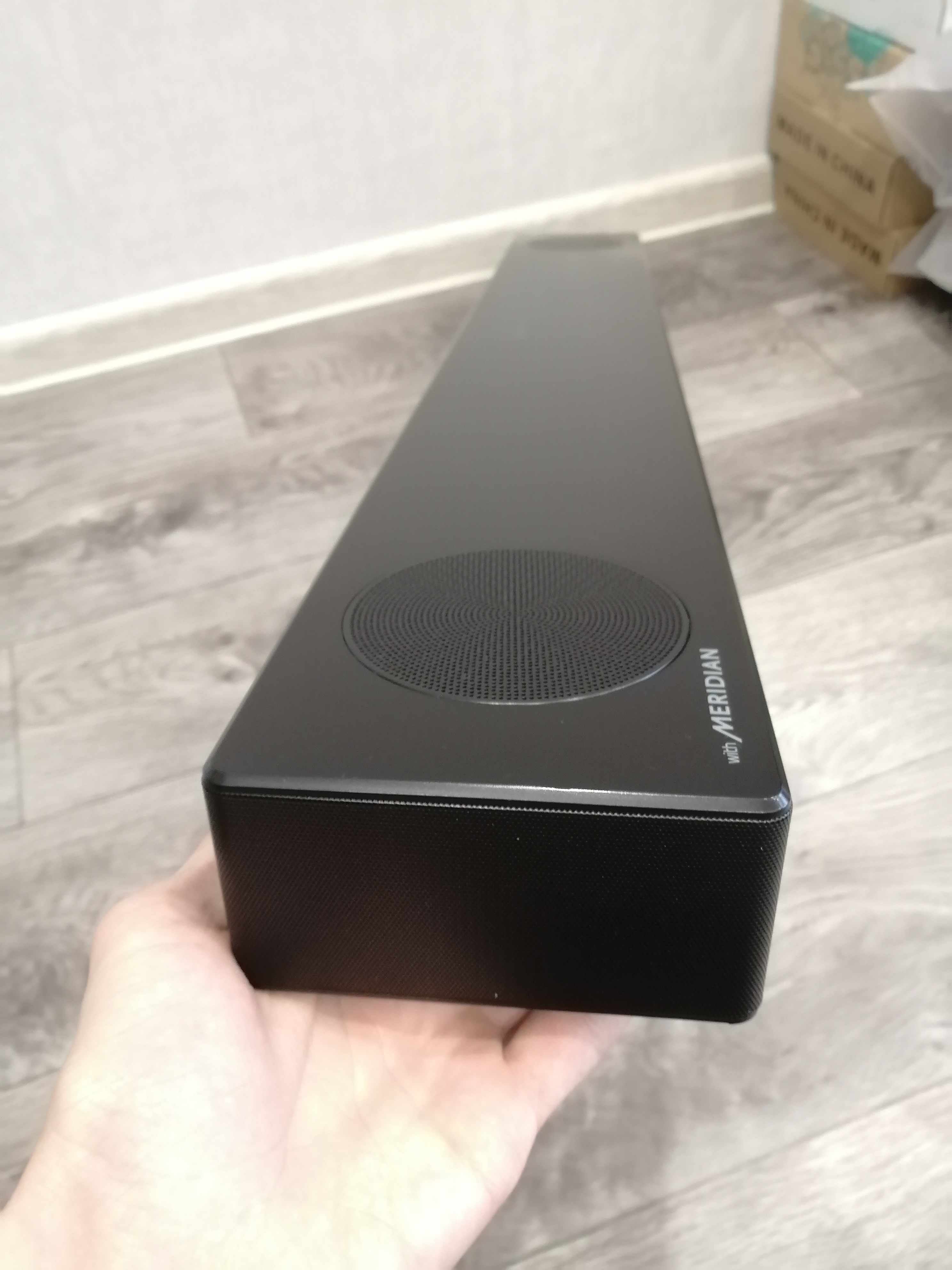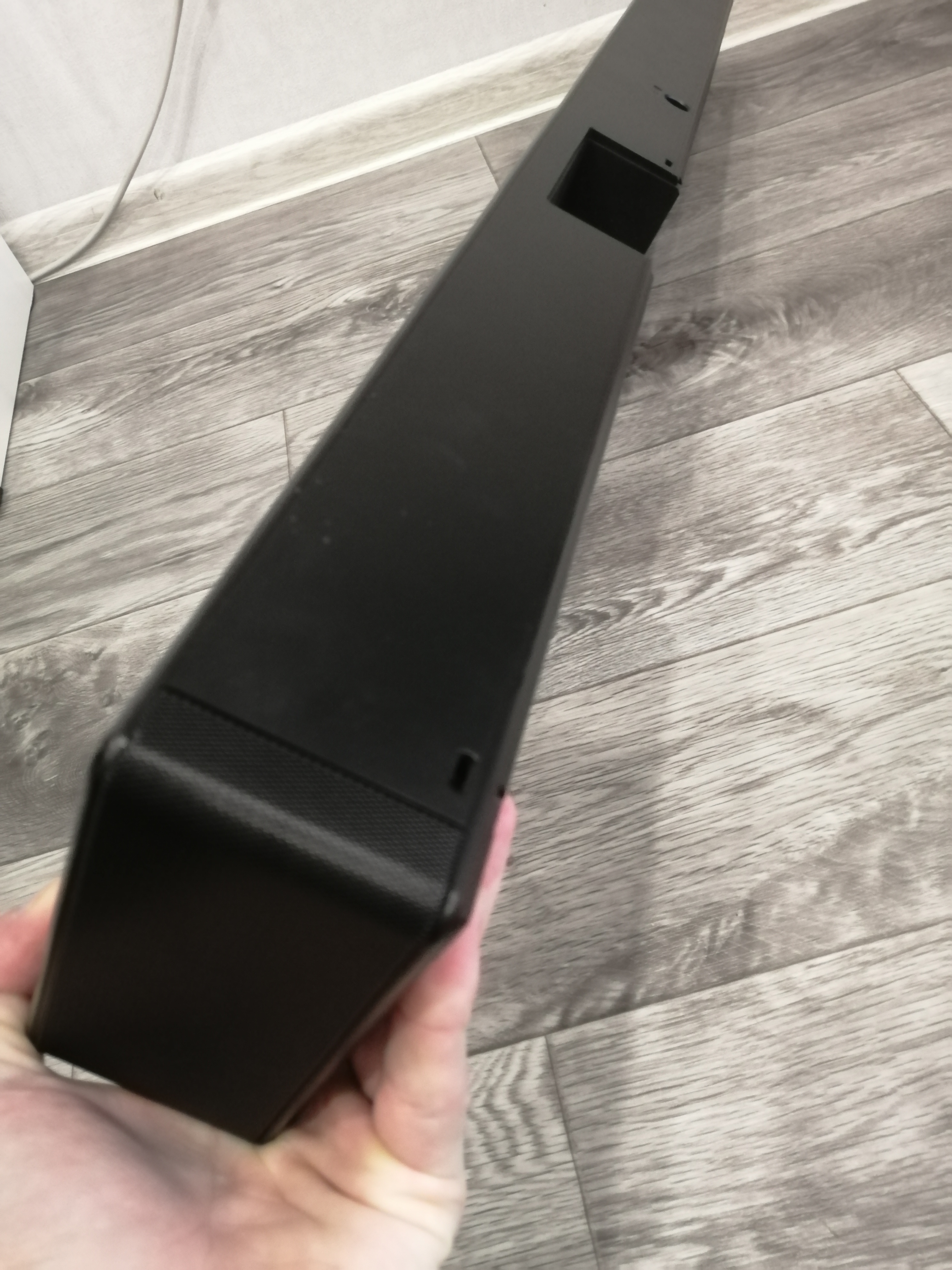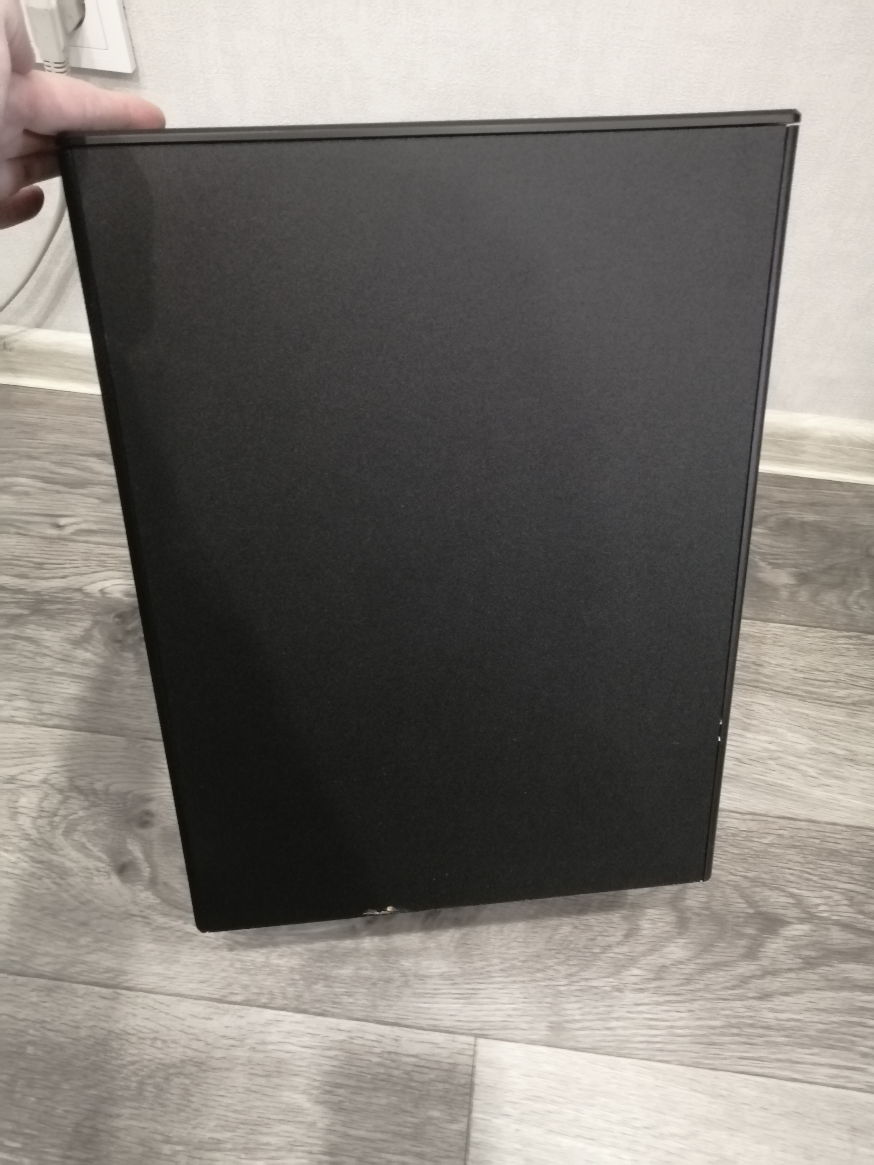 Комплект: Панель, сабвуфер, БП, ПДУ, кабель питания, оптический кабель. Коробки нет.