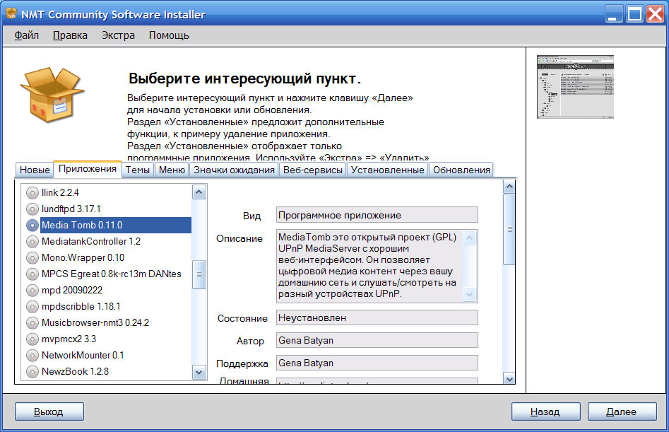 1. Для начала устанавливаем MediaTomb: